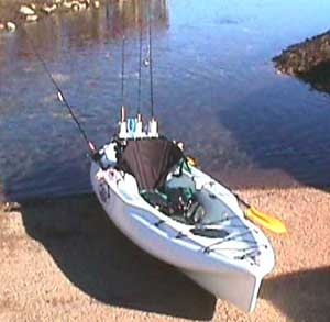 Well, nothing is perfect. You do lose some of your draft as the mechanism protrudes from the bottom of the boat a few inches. As well, you must be conscious of the water depth if it is changing rapidly. You can bend the 'mast' of the flippers if you cruise into the bottom at mid stroke. It seems like(as someone I was discussing the unit mentioned) that you could make a spring like action that would avoid any real damage while still being rigid enough for efficient pedaling. As an example on a recent trip to Perico Island I found some areas in the back bay that I would have had to drag the boat sooner than non-pedal craft. But removing the pedal system is quick and easy as two large knobs turn to lock the positioning pegs. Normally you launch the craft and when the water is deep enough (about 12 - 18 inches) you drop the pedal system in and you are good to go. The rudder which is required to provide direction to the propulsion has a lever to kick up or down and a lever to provide control the direction. The boat does spin in the wind if the rudder is up it can be paddled easily though. No doubt the speed advantage is lost under paddle power. With the rudder though it is a decent paddler and would do well for short trips. The boat comes complete with a two piece cupped paddle which is adequate but a little heavy. Paddle stowage is provided on either side of the yak by slot and bungee. |